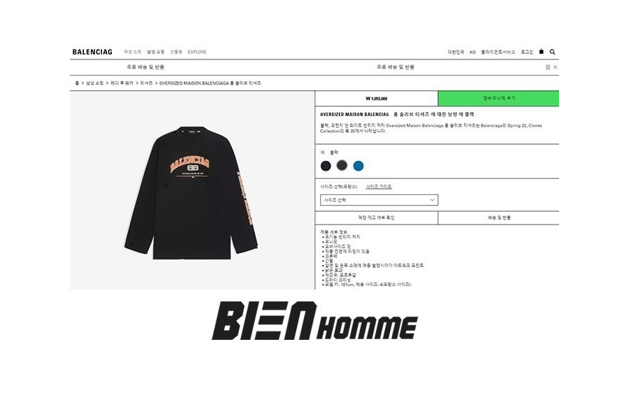 발렌시A가 BB체인 빈티지 롱슬리브 (PREMIUM) 요약정보 및 구매